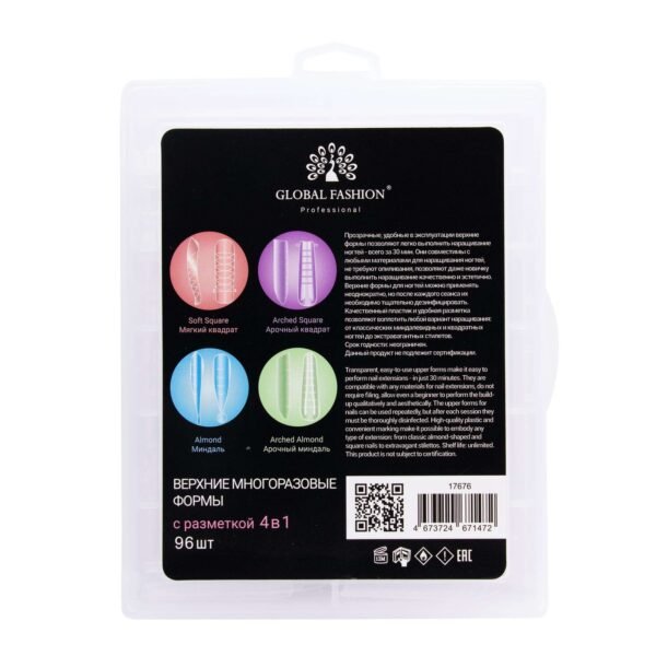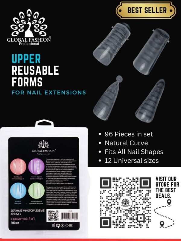 Global Fashion Professional Top Reusable Forms – Extended, 96 Pcs are the perfect solution for long-lasting, salon-quality nail extensions at home. These high-quality plastic forms are durable and can be used multiple times, saving you money. They are also easy to use, even for beginners, and come in a variety of sizes to fit most natural nails.